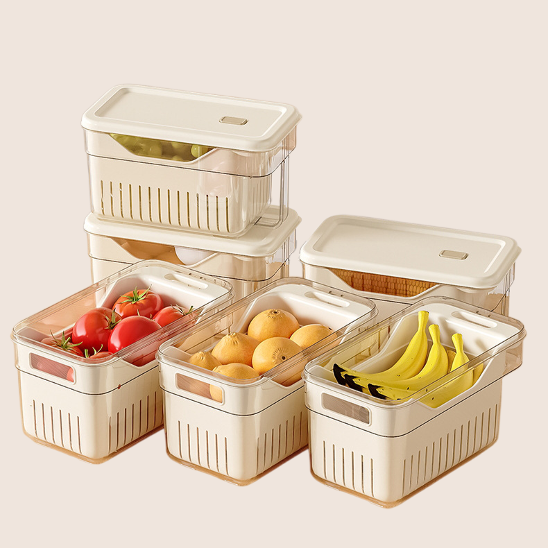 多功能收納盒,適用冰箱冷藏,瀝水設計保持食材新鮮,分類儲存,節省空間,透明材質易辨識,耐用易清洗。